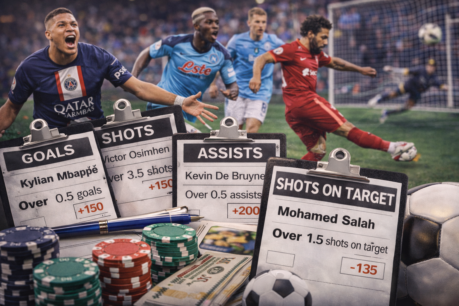 Los props de jugadores son apuestas especiales centradas en estadísticas individuales de un futbolista durante un partido. No dependen del resultado del encuentro, solo del rendimiento del jugador en métricas concretas.